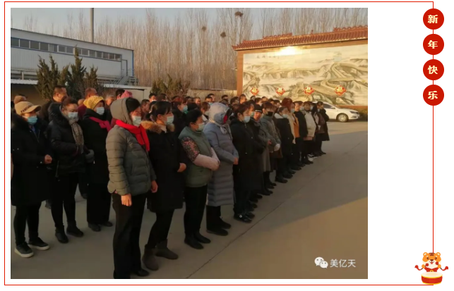 雄關(guān)漫道真如鐵,而今邁步從頭越。讓我們在王總的帶領(lǐng)下,攜手并肩,同舟共濟,團結一致。以更加飽滿(mǎn)的熱情和奮發(fā)向上的精神,抓住機遇,迎接挑戰,向著(zhù)更高更遠的目標闊步前進(jìn),不斷創(chuàng )造新的歷史和輝煌。讓美億天員工生活得更自信、更自豪、更幸福!我們的工作很有意義——讓人民吃的更加美味!生活更加幸福!身體更加健康!最后感謝美億天全體員工和家屬、感恩新老客戶(hù)大力支持!恭祝大家闔家幸福!萬(wàn)事如意!